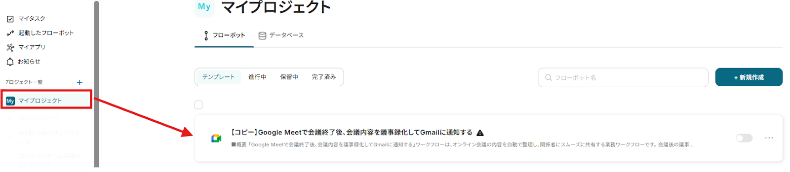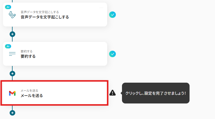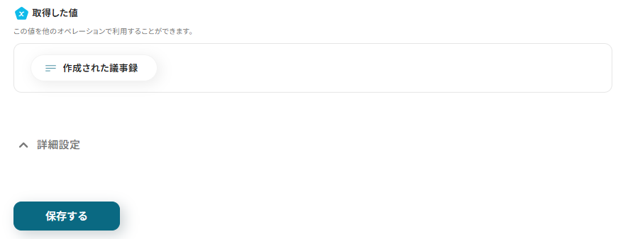 これで【Google Meetで会議終了後、会議内容を議事録化してGmailに通知する 】というフローが完成です。