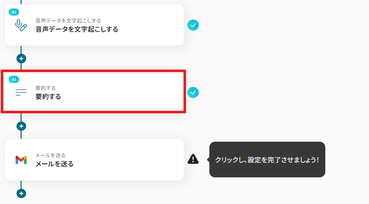 1) フローに戻り、「要約する」のアイコンをクリックします。