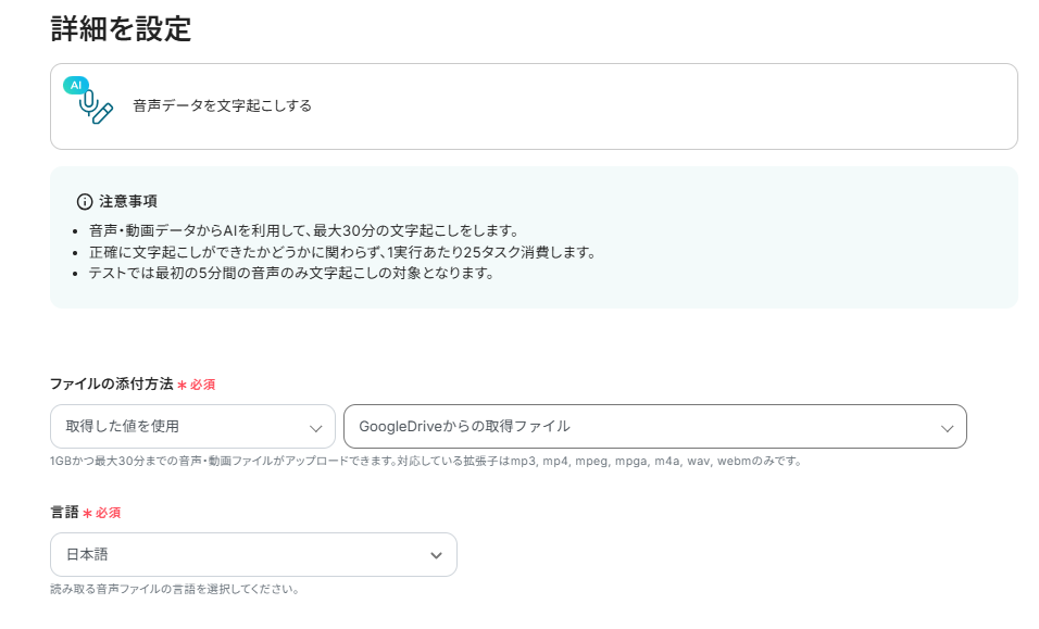 ステップ7:AIオペレーション音声データを文字起こしする設定