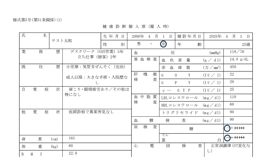 設定が終わったらテストを行います。 Google Driveの画面に移り、先ほど指定したフォルダ内にテスト用の健康診断書ファイルをアップロードしてください。 今回はテストとして、以下のようなファイルをアップロードしてみました!