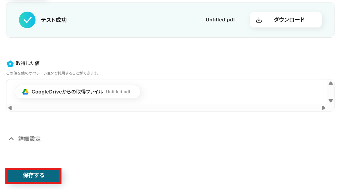 ステップ4:Google Driveのファイルをダウンロードする設定