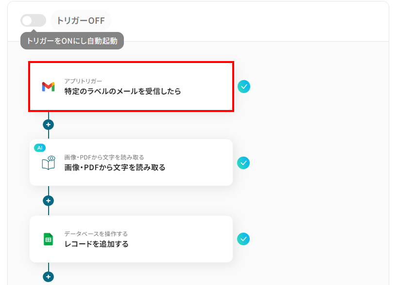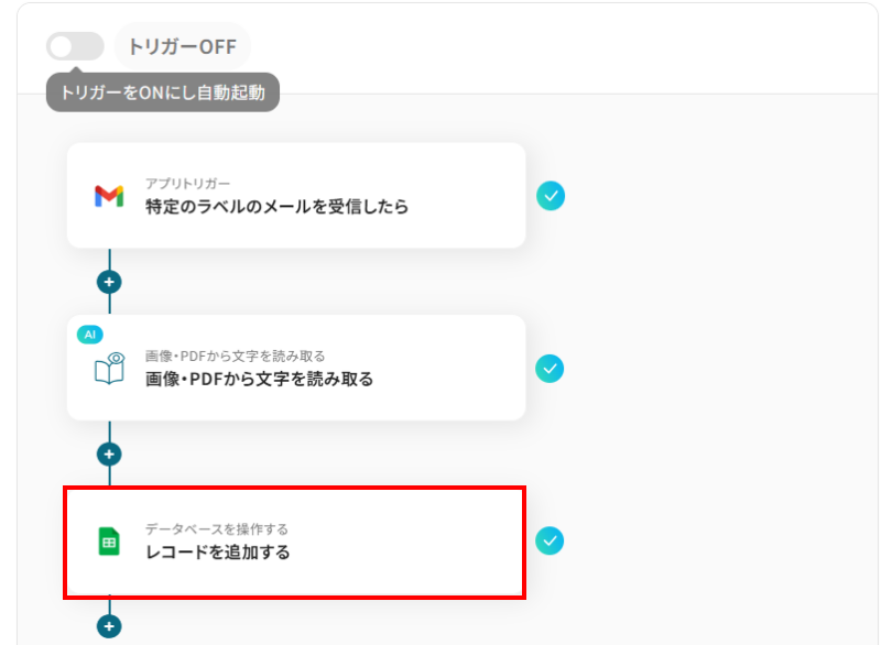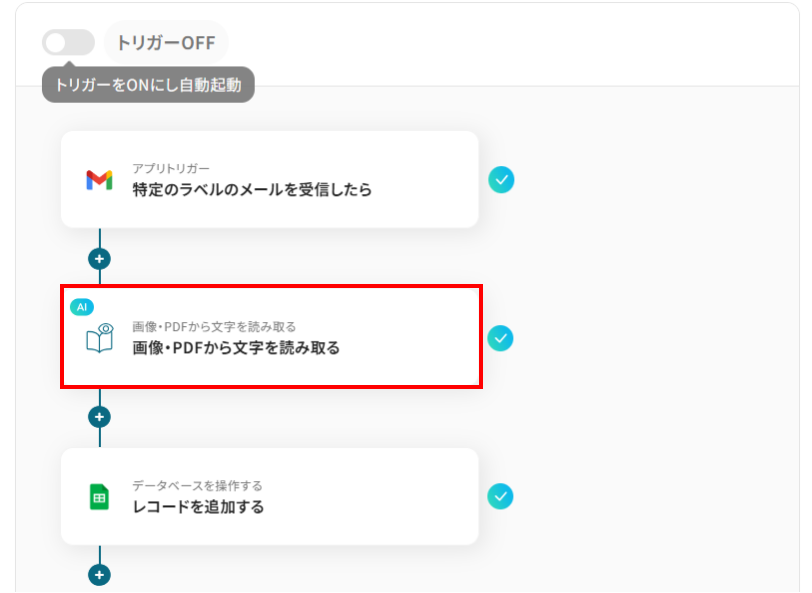 ここでは、代表的な例として「Gmailで受信した保険証画像をOCRで読み取り、Google スプレッドシートに自動で追加する」フローの作成手順を解説します。