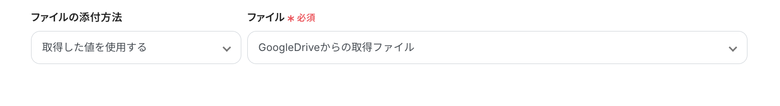 - ファイルの添付方法:ステップ4でダウンロードしたGoogle Driveのファイルを添付するので、下図のように設定しましょう。