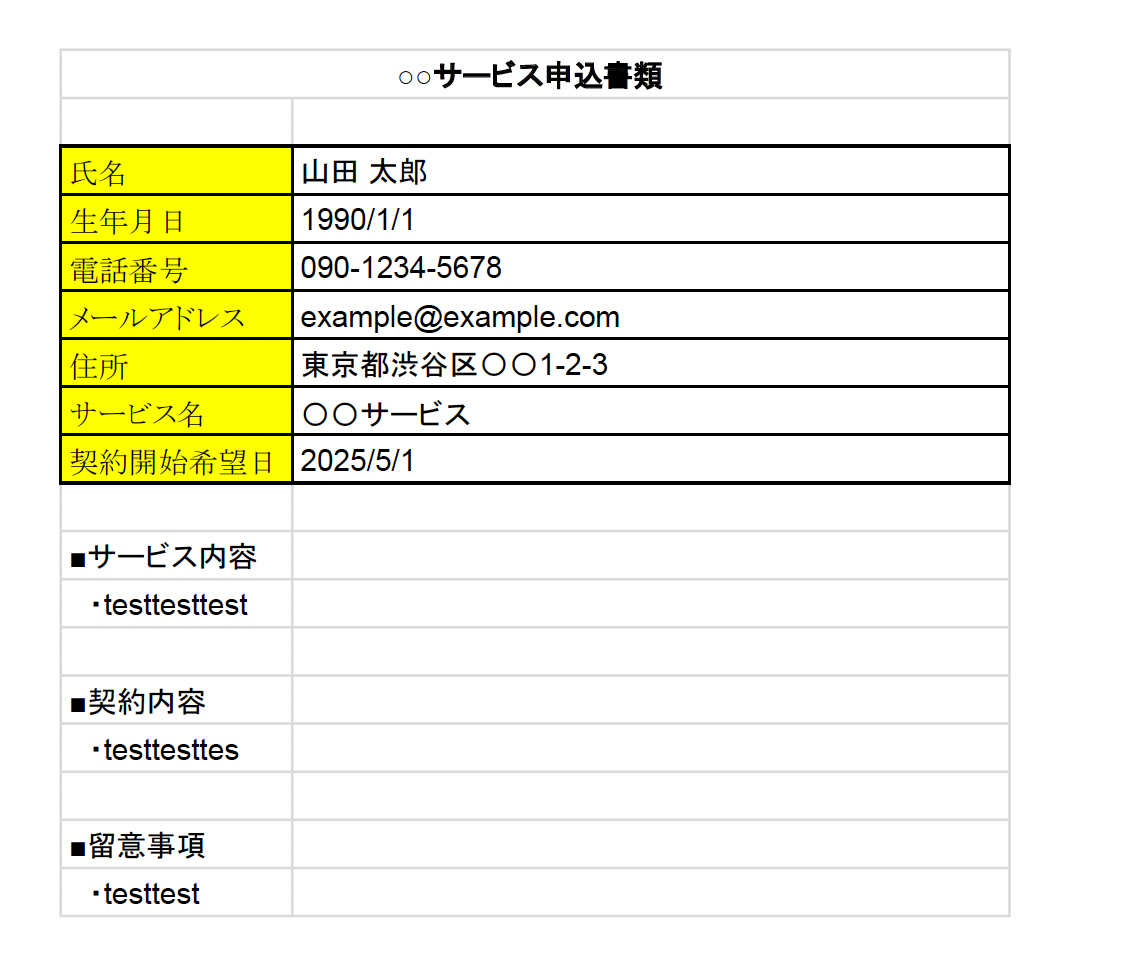先ほど「フォルダID」に設定したフォルダ内に、下記のようなテスト用の書類をアップロードしてください。