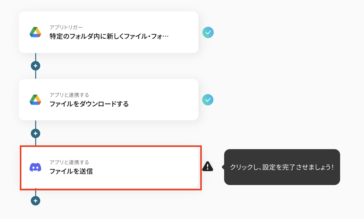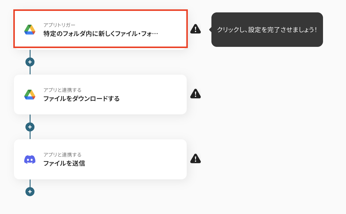 それでは例として、「Google Driveに特定のファイルが格納された際に、そのファイル情報をDiscordの指定したチャンネルに自動で送信する」フローの作成手順を解説していきます!