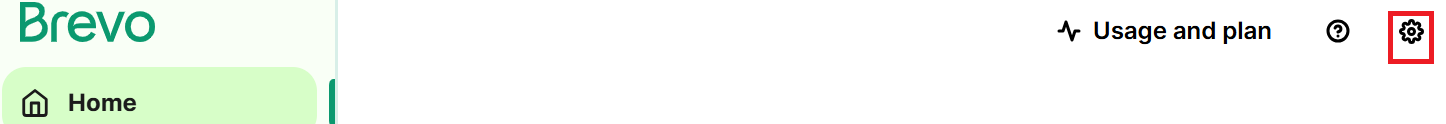 Brevoホームより、歯車マークの設定ボタンをクリックします。
