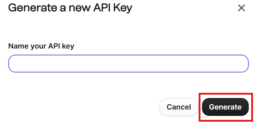 任意のAPIキーの名前を入力し、「Generate」を押すとAPIキーが生成されます。