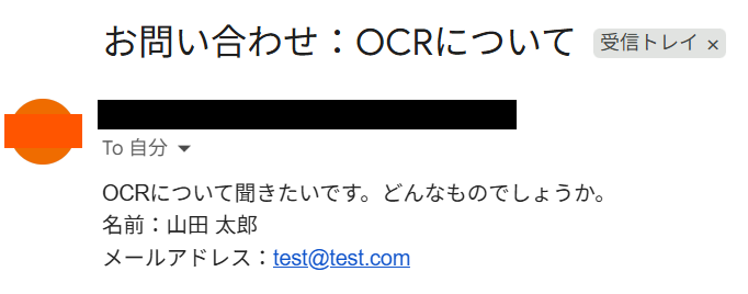 トリガー感知テストの為、連携アカウントのGmailアドレス宛に以下のようなメールを送信しました。