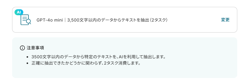 テキスト抽出に使うAIの設定はそのままで構いません。