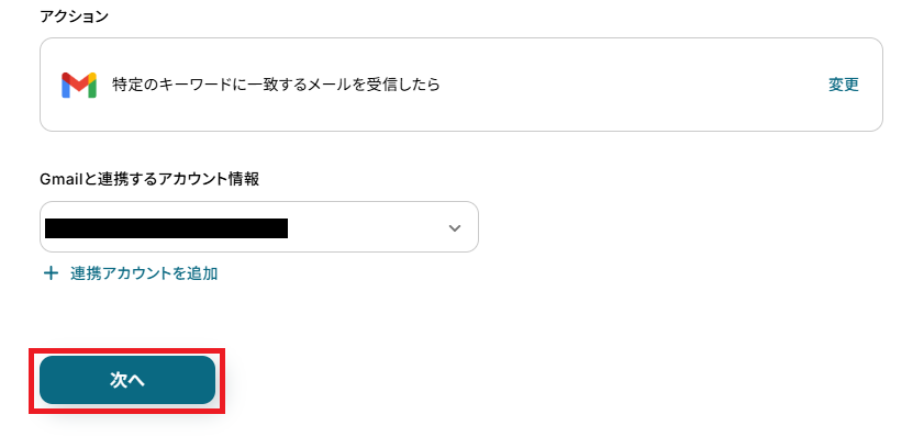 アカウント情報は、トリガーと連携したいアカウントが選択されているか確認してください。