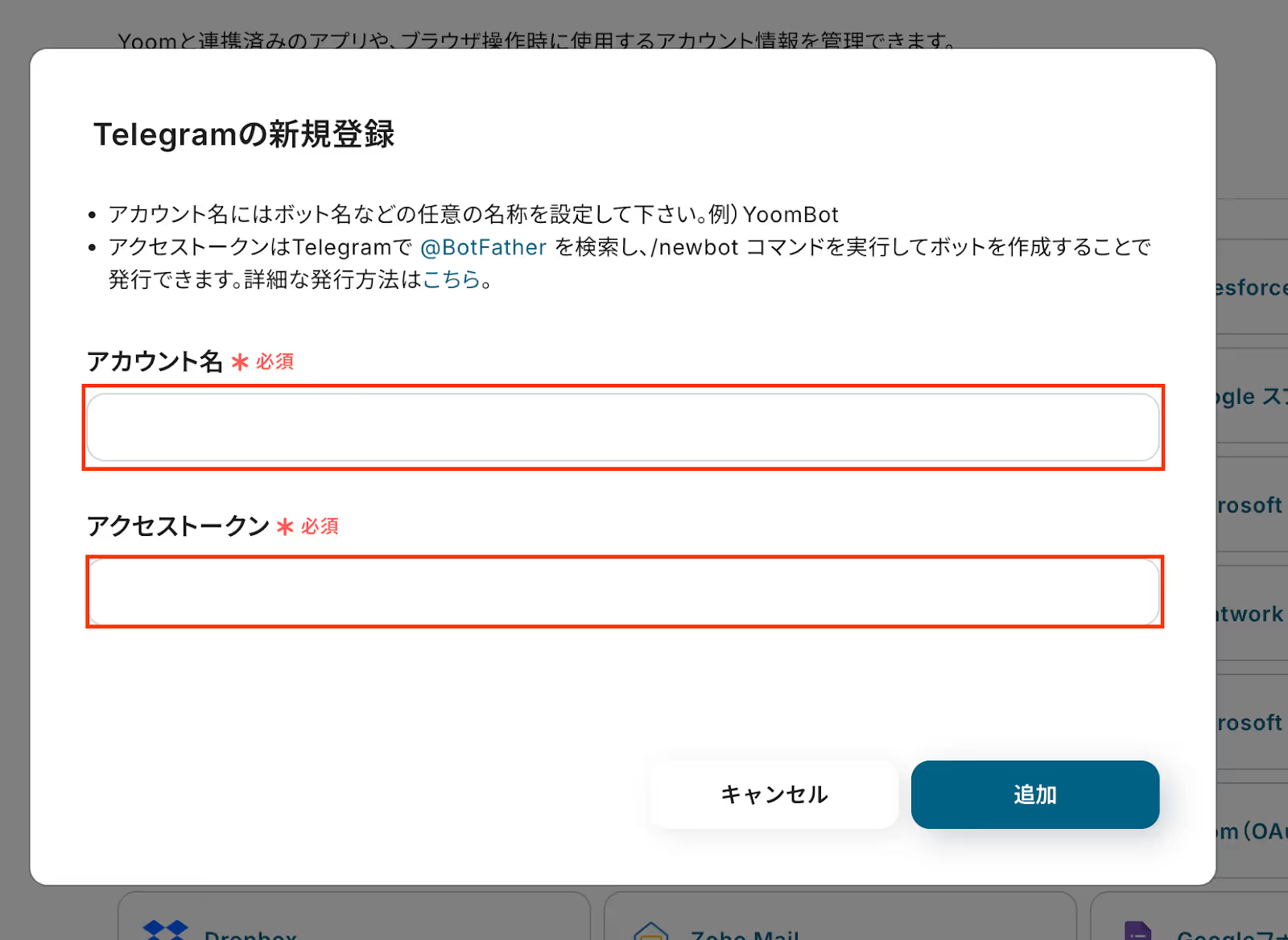 ・Telegram、Microsoft TeamsのそれぞれとYoomを連携してください。