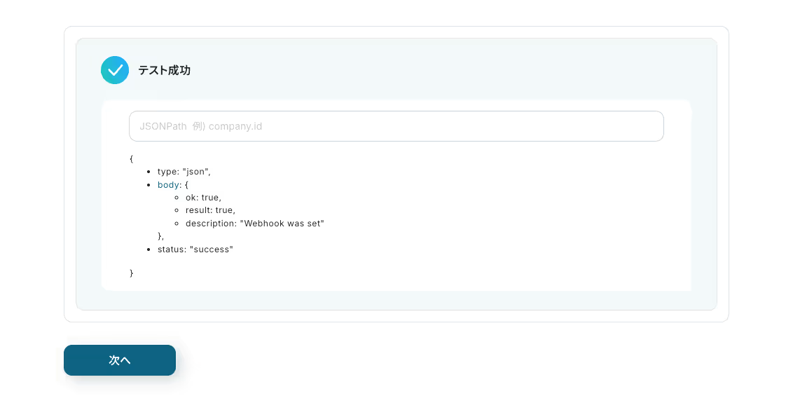 3.画面が切り替わったら、Telegramのボットに届いたメッセージがYoomと連携できるかをテストします。