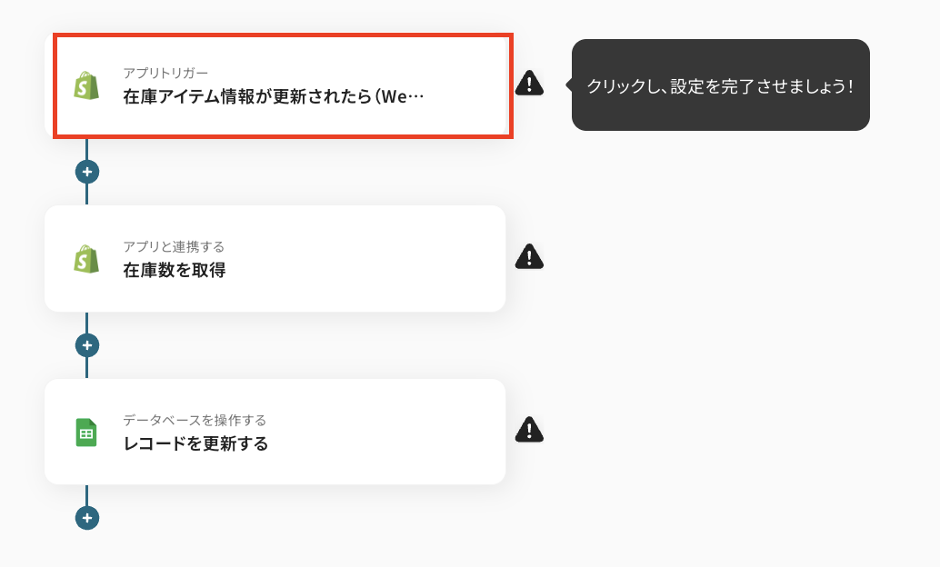 それではここから代表的な例として、「Shopifyで在庫情報が更新された際にGoogle スプレッドシートの在庫情報も自動で更新する」フローの作成手順を解説していきます!