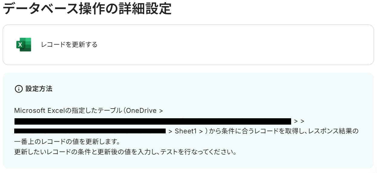 ・Microsoft Excelのデータベースを操作するオペレーションの設定に関しては、下記をご参照ください。