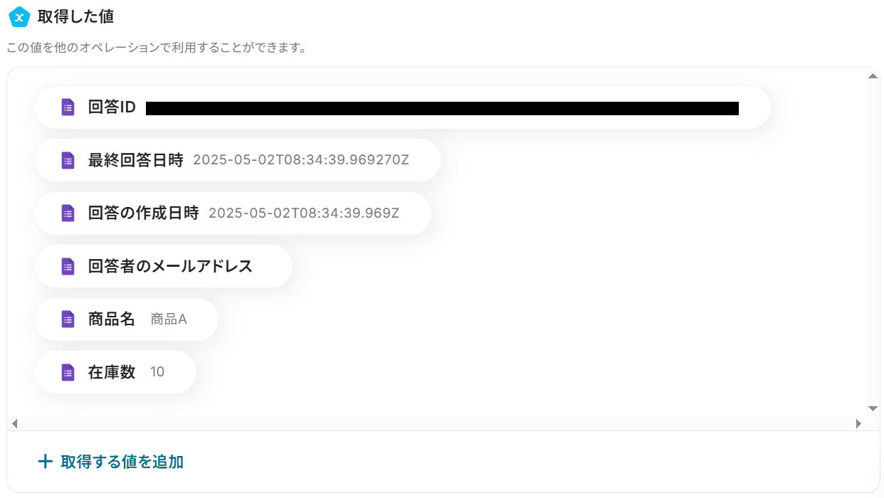※Googleフォームをトリガーに設定した場合の回答データの取得方法についてはこちらを参考にしてみてくださいね!