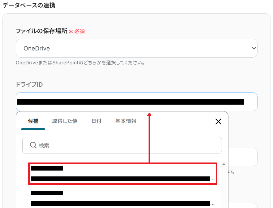 次に、先ほど用意したシートのドライブIDを候補から選択してください。