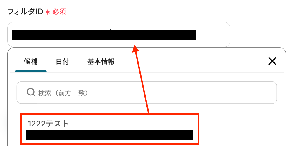 使用したい「サイトID」と「フォルダID」を候補から選択しましょう。