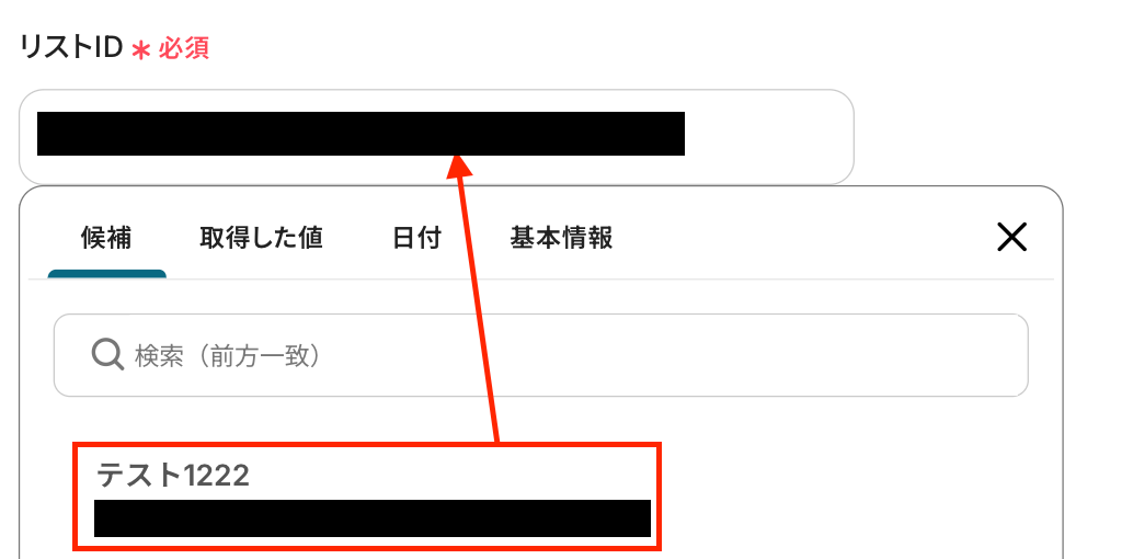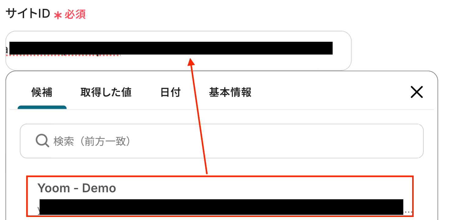 作成したリストが作成されている「サイトID]と「リストID」を候補から選択しましょう。