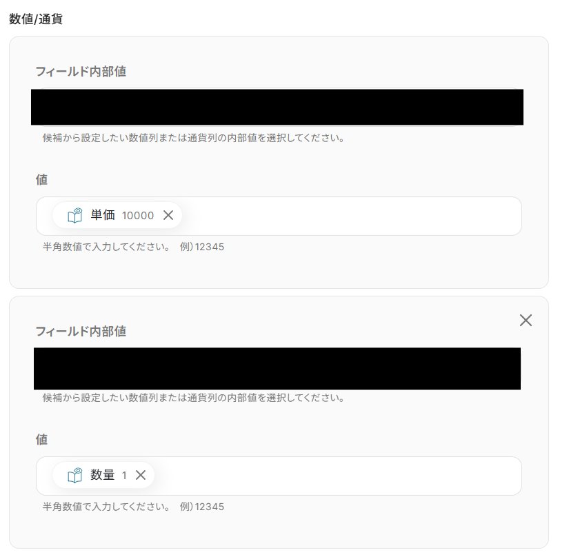 同様にその他の項目も任意で設定しましょう。 今回は「数値/通貨」を設定しました!