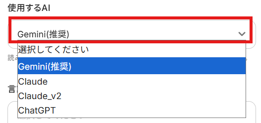 「使用するAI」を「Gemini(推奨)」「Claude」「Claude_v2」「ChatGPT」から選択してください。