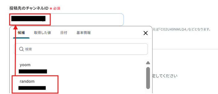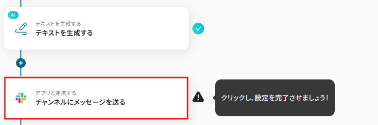 最後に「Slackのチャンネルにメッセージを送る」設定です。
