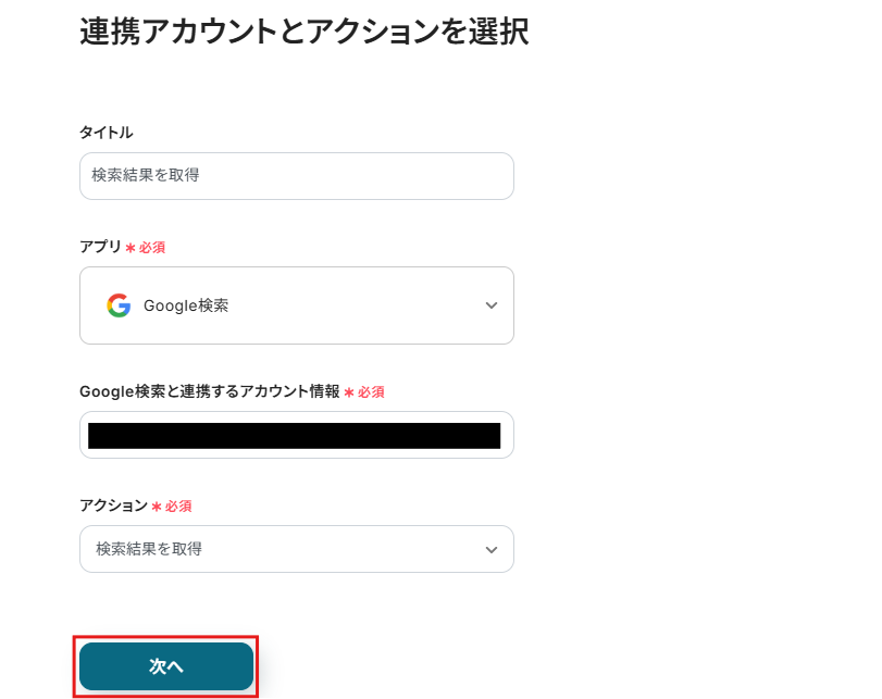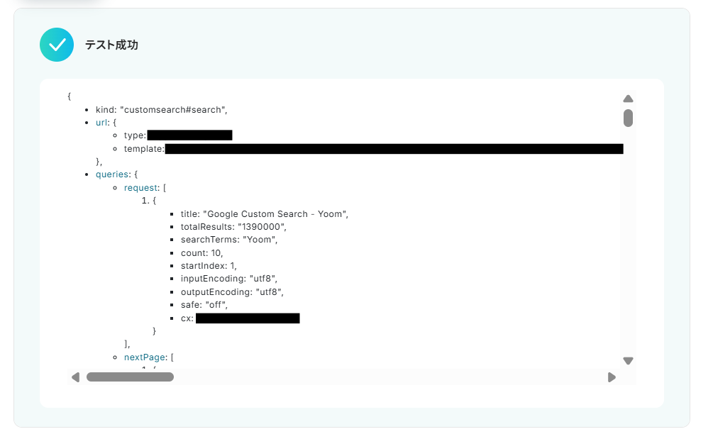 検索クエリとは、検索キーワードのことです。今回はテストとして「Yoom」と設定しました。
