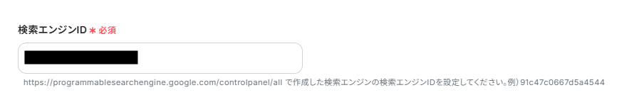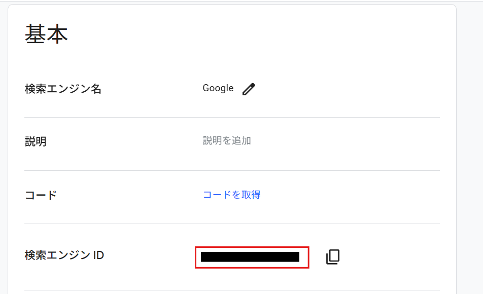 まずは検索エンジンIDをこちらから取得します。検索エンジンID入力欄下のURLからアクセスしましょう。