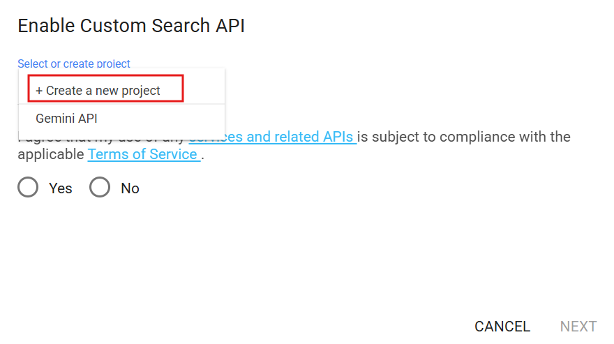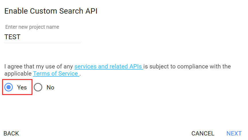 プロジェクト名を入力したら、Yesボタンをチェックしてください。