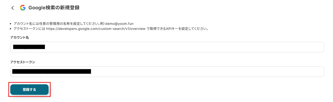 ・Google スプレッドシート、Google 検索のそれぞれとYoomを連携してください。