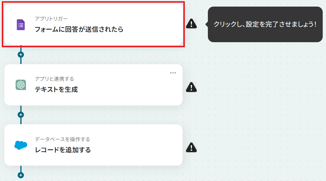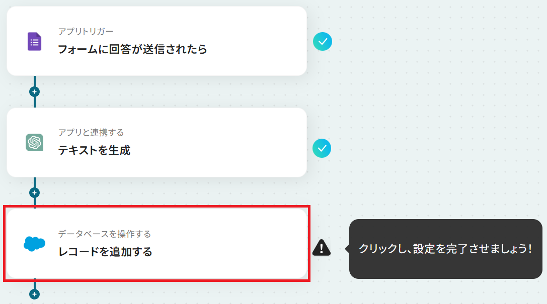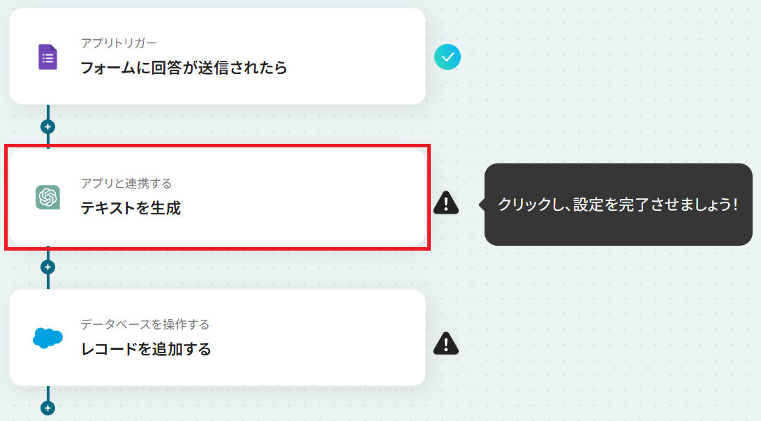 - Googleフォーム、ChatGPT、SalesforceのそれぞれとYoomを連携してください
