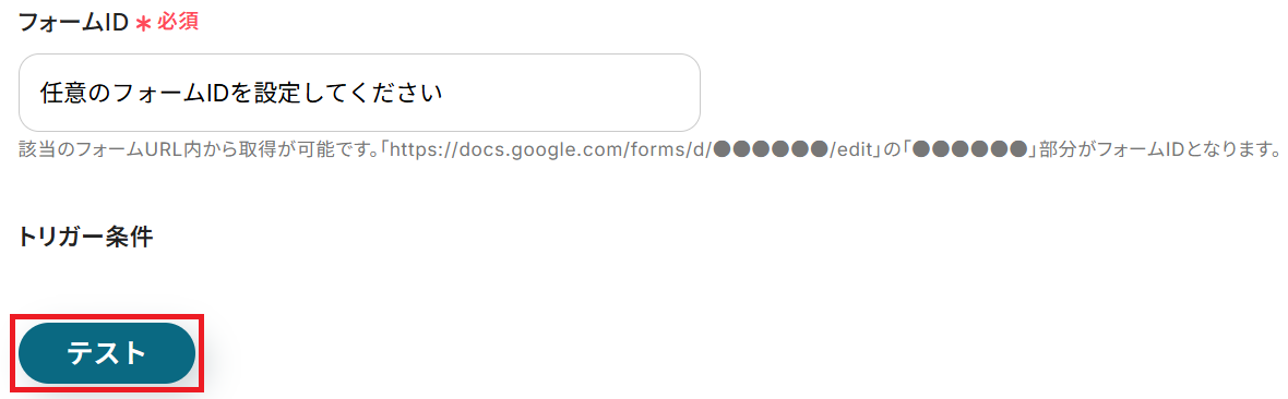 次に、テキストボックス下部の説明通りにフォームIDを入力してテストしてください。
