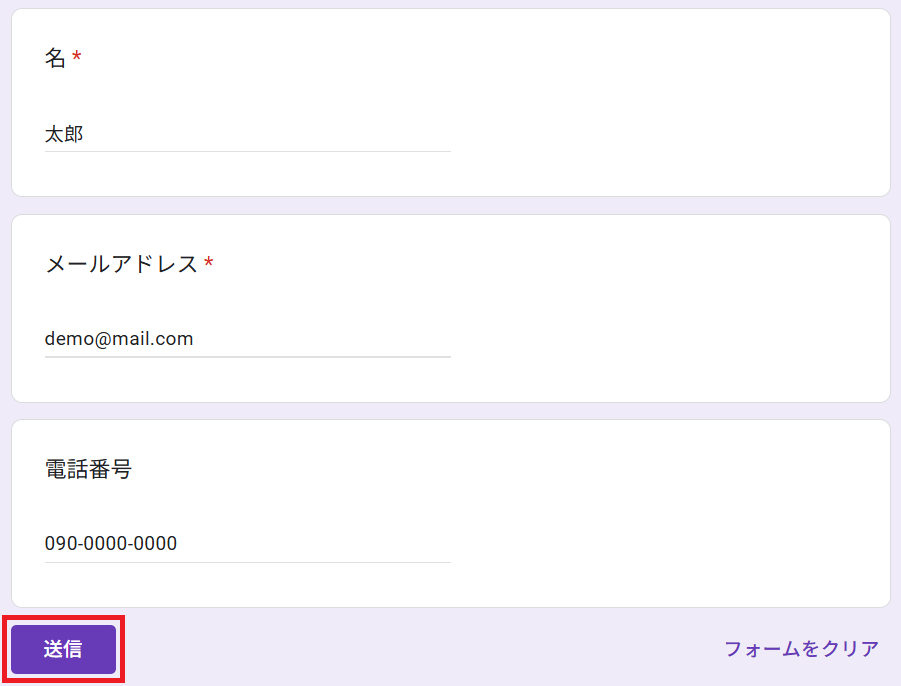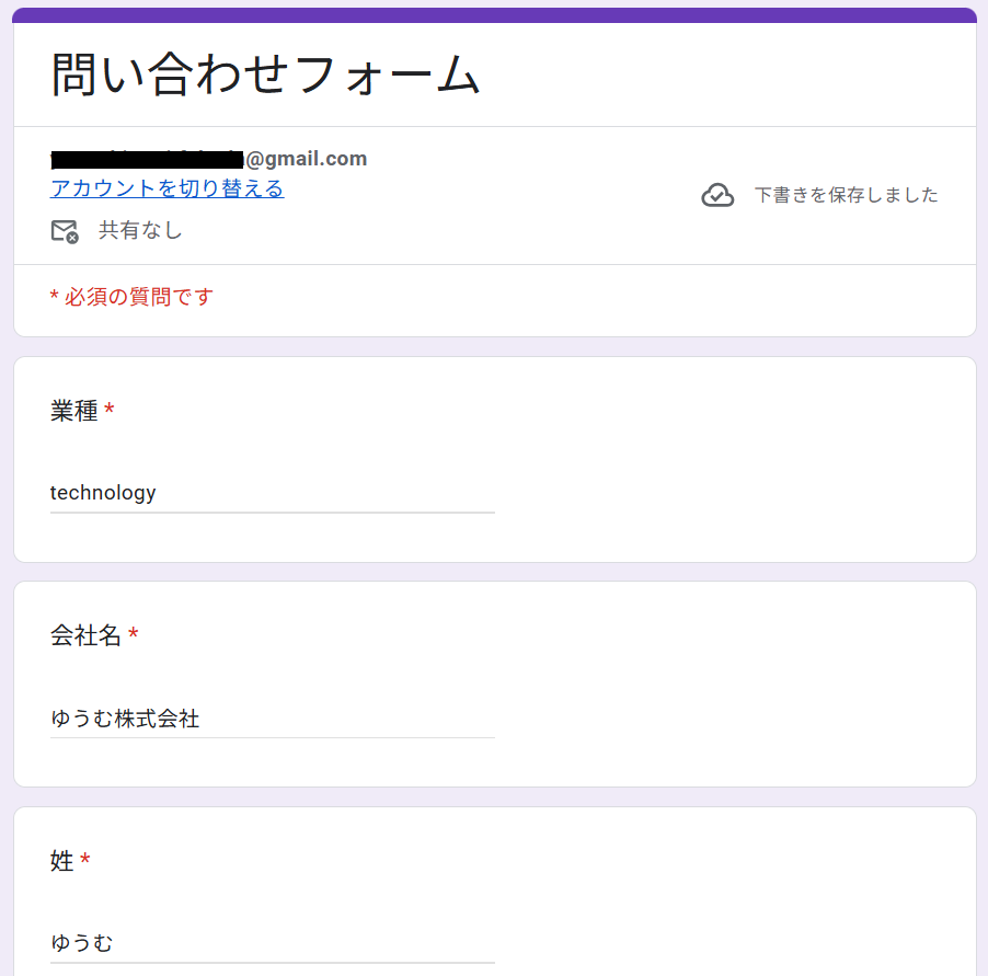 はじめにテスト用フォームを作成して、ご自身で回答してください。