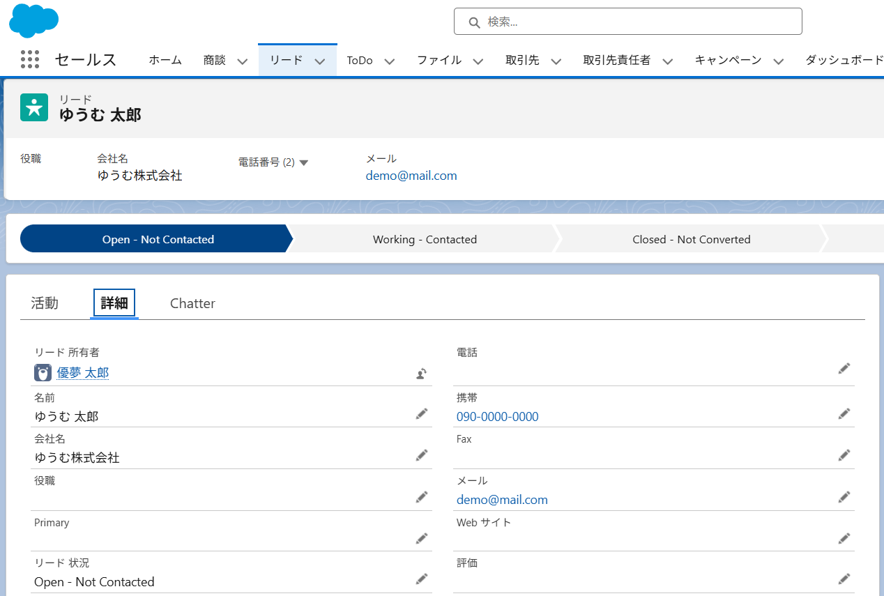 ステップ3・4で取得した情報を、Salesforceで新規リードとして登録します。
