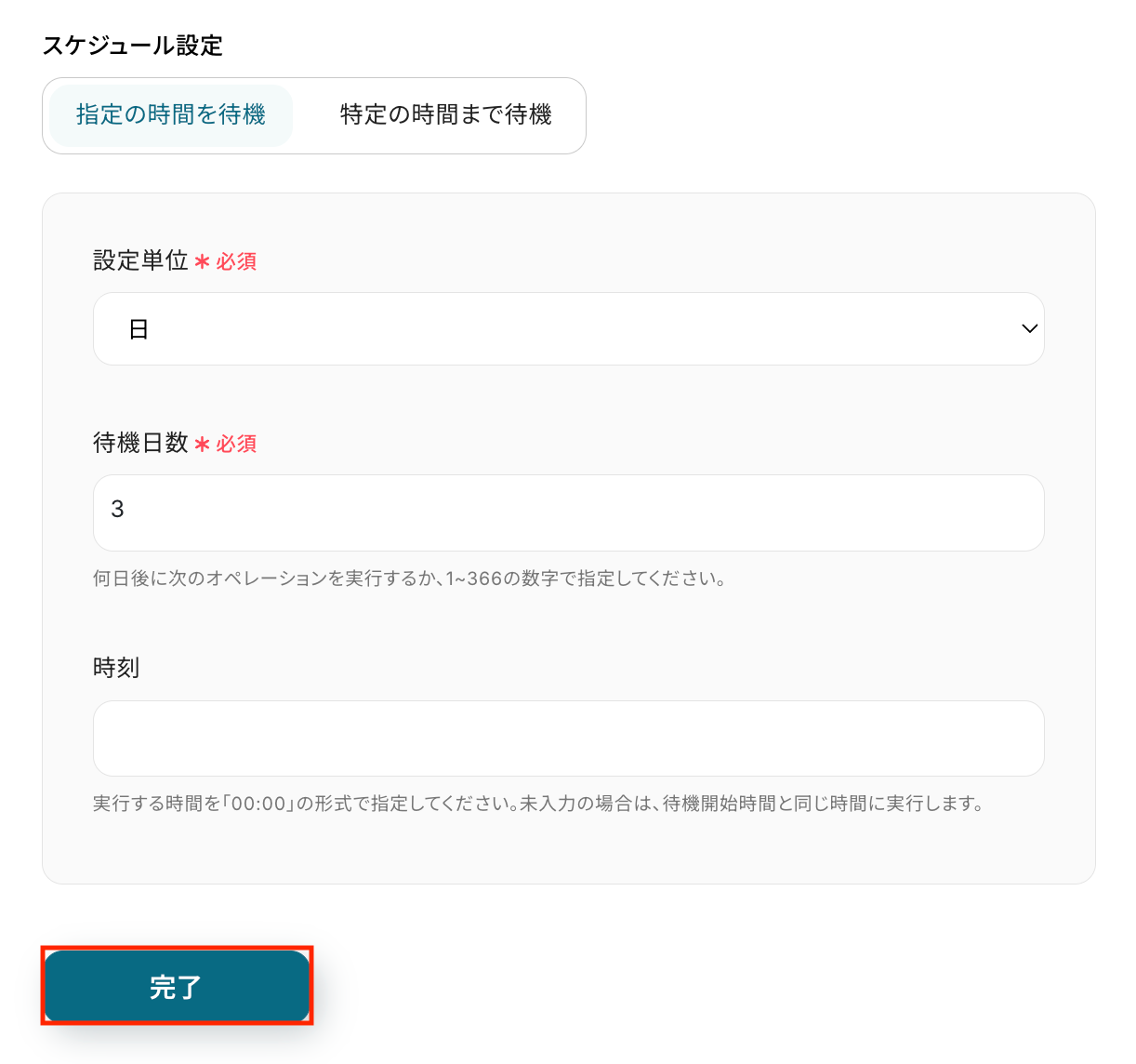 これにより、「3日後にリマインドメールを送信する」「1週間後に別のコンテンツを送信する」といった、ステップメールのような運用も可能です。