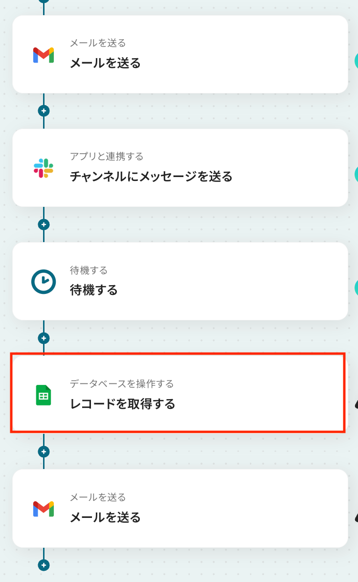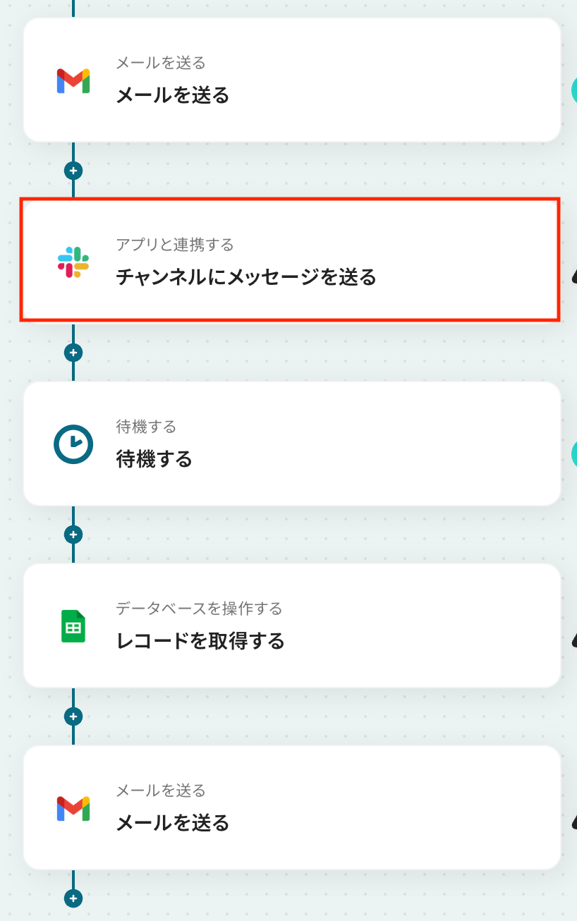 Google スプレッドシート、Gmail、Slackの各アクション設定