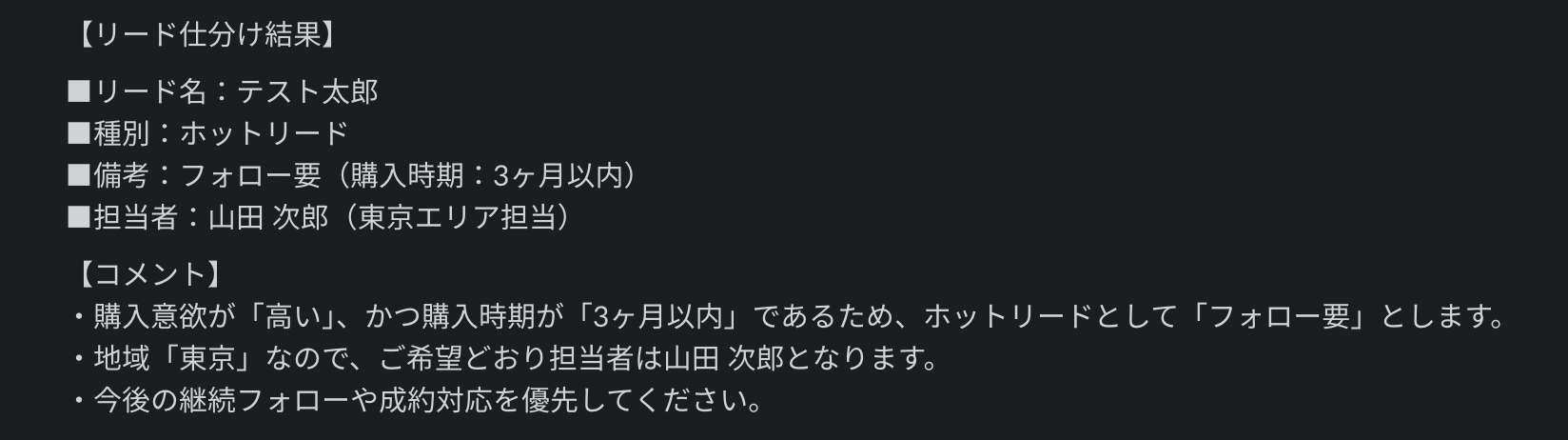 これにより、担当者はリードへの迅速かつ適切な初動対応を実現し、本来注力すべき商談や顧客との関係構築といったコア業務に集中できる環境が整うでしょう!