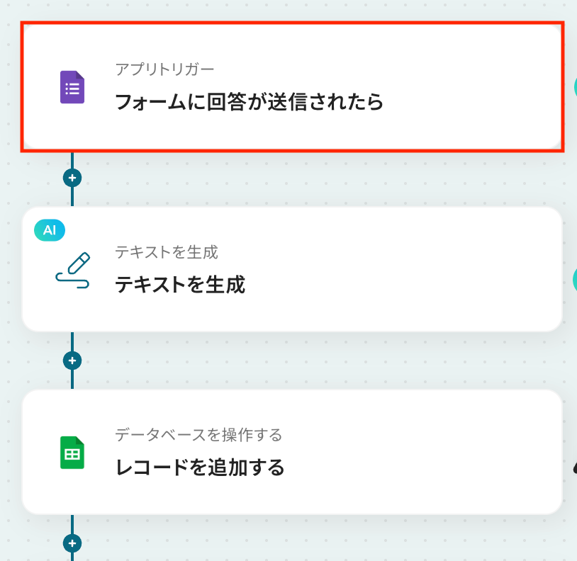 Googleフォームのトリガーとアクション設定およびAI機能でテキスト生成