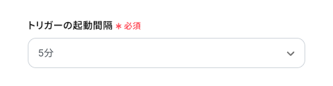 トリガーの起動タイミングは、5分、10分、15分、30分、60分のいずれかで設定できます。ご利用プラン によって、設定できるトリガーの最短間隔が違うので、その点は要チェックです。 なお、基本的にはそのプランの最短の起動間隔にしてお使いいただくことをおすすめします。
