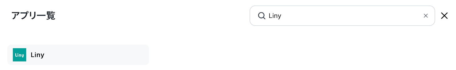 新規接続をクリックしたあと、アプリのメニュー一覧が表示されるのでLinyと検索し、対象アプリをクリックしてください。