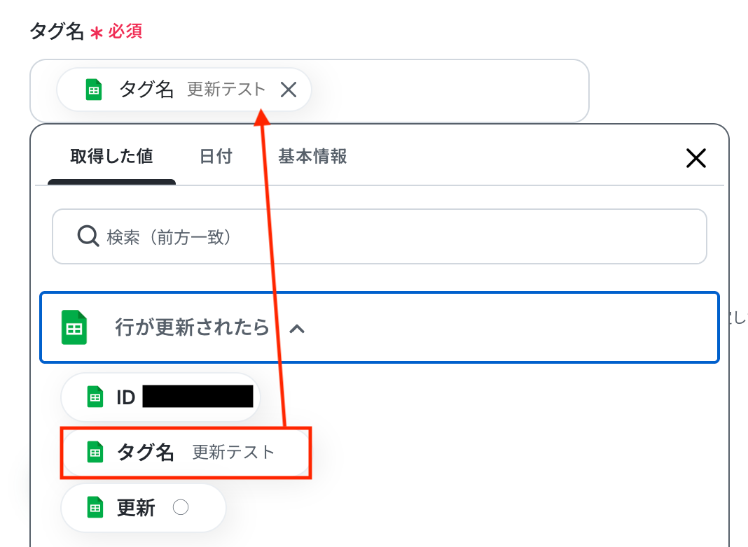 ステップ4:Linyでタグを更新する いよいよ最後の設定です! 前のステップでGoogle スプレッドシートから取得した値を利用して、Linyでタグを更新しましょう。