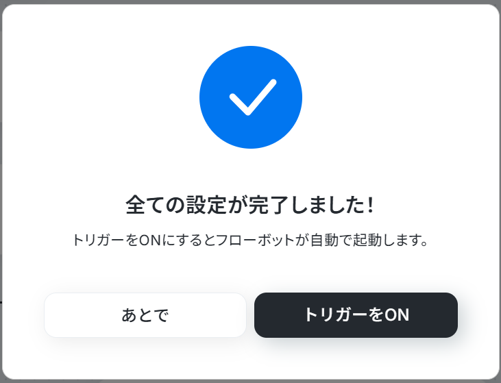 トリガーをONに設定しフロー稼働の準備完了