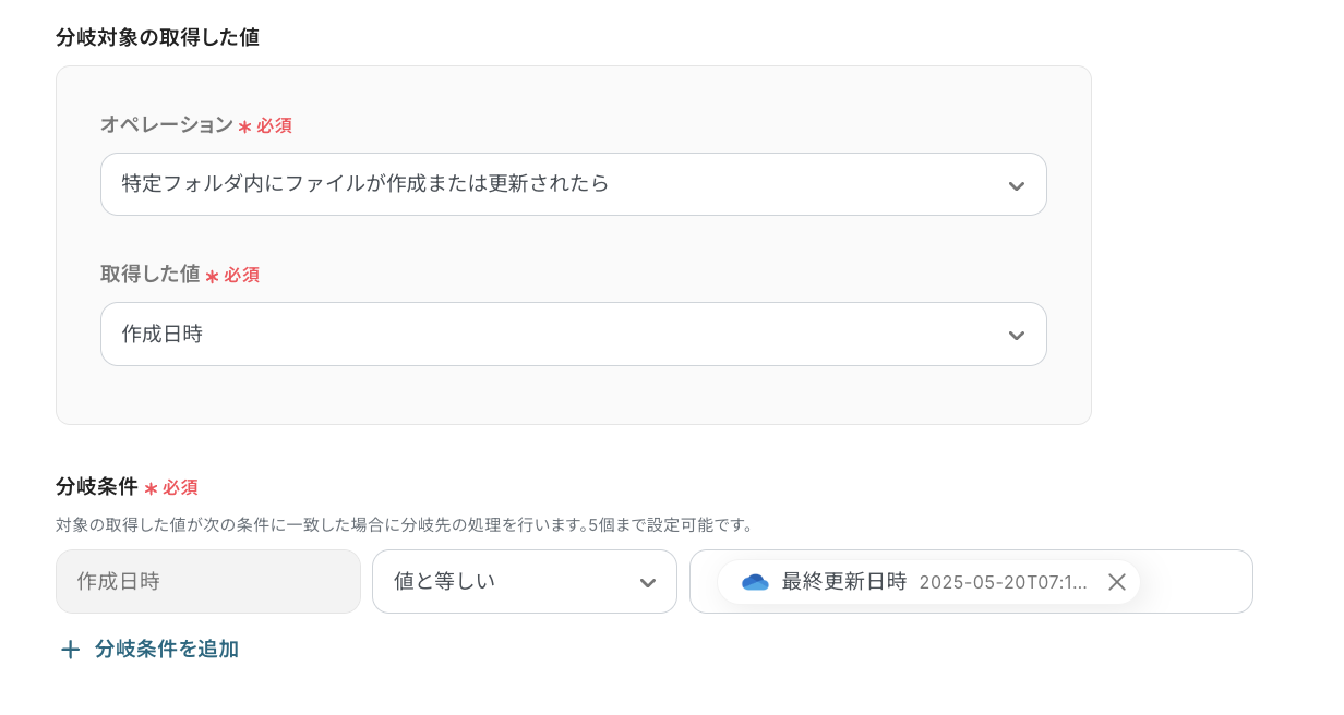 ステップ3:OneDriveのトリガー設定