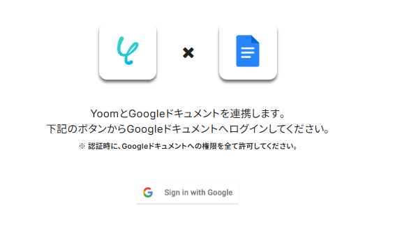 以下のような連携画面が表示されるので、「Sign in with Google」をクリックします。