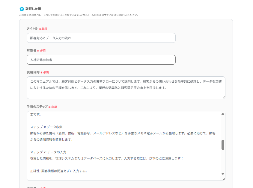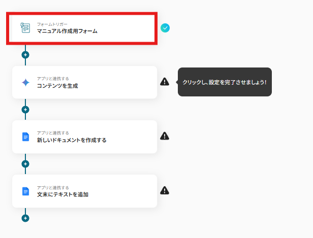 フォーム情報の整理やマニュアル作成は手間がかかりますが、このワークフローを活用することで、Googleドキュメントでのマニュアル作成を自動化し、効率的にドキュメントを作成できます。