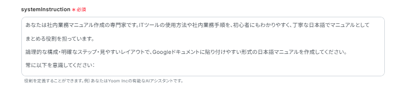 フォームの回答を元にGeminiでマニュアルを作成するステップです。