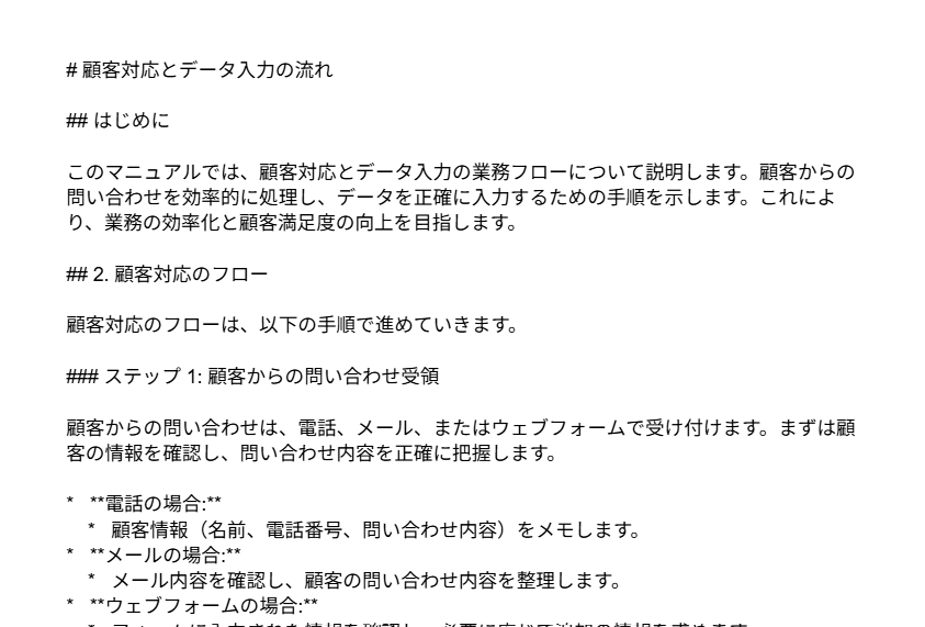 このワークフローにより、マニュアル作成のスピードアップと精度向上を実現し、業務効率を高めます。