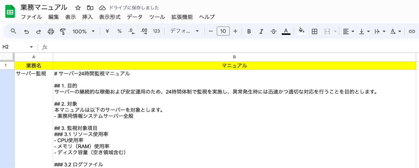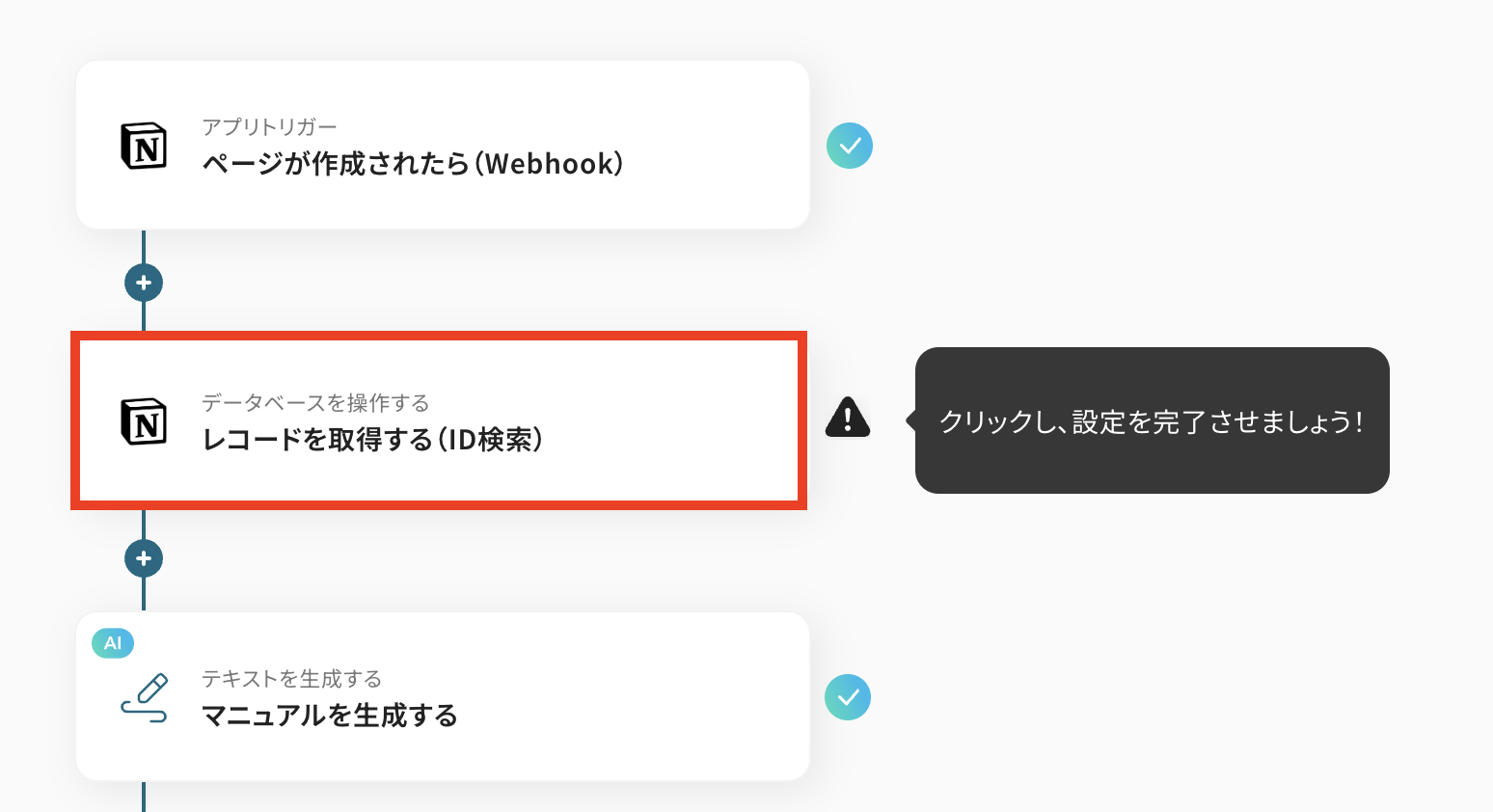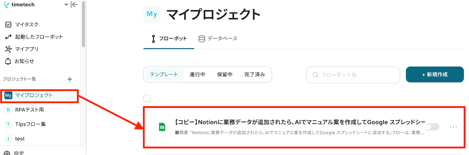 以上が、Notionに業務データが追加されたら、AIでマニュアル案を作成してGoogle スプレッドシートに追加するための連携手順になります。