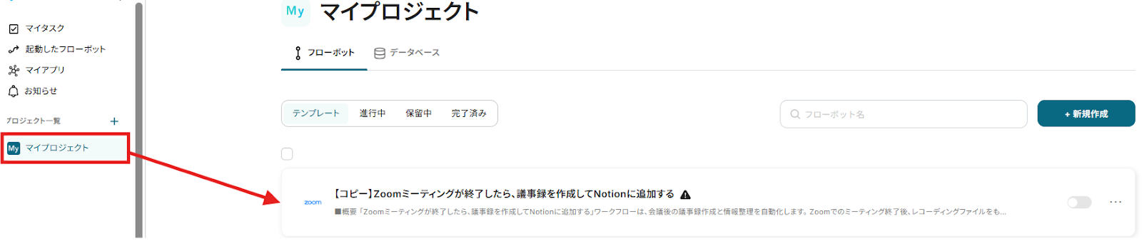 これで【Zoomミーティングが終了したら、議事録を作成してNotionに追加する】というフローが完成です。