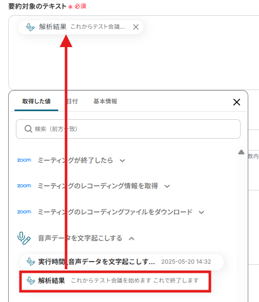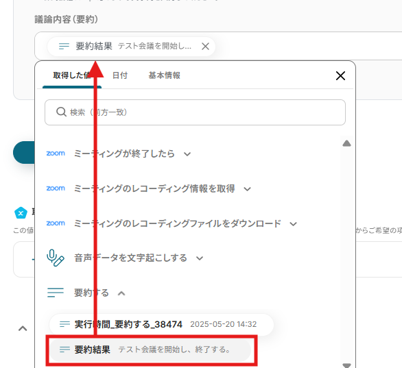 追加するレコードにはアウトプットから該当する情報を選択して入力します。Zoomの情報や要約内容を引用して入力してください。