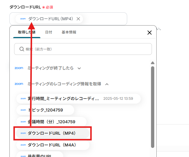 ・Zoomでミーティングのレコーディング情報を取得する際の注意点は下記をご覧ください。